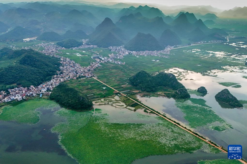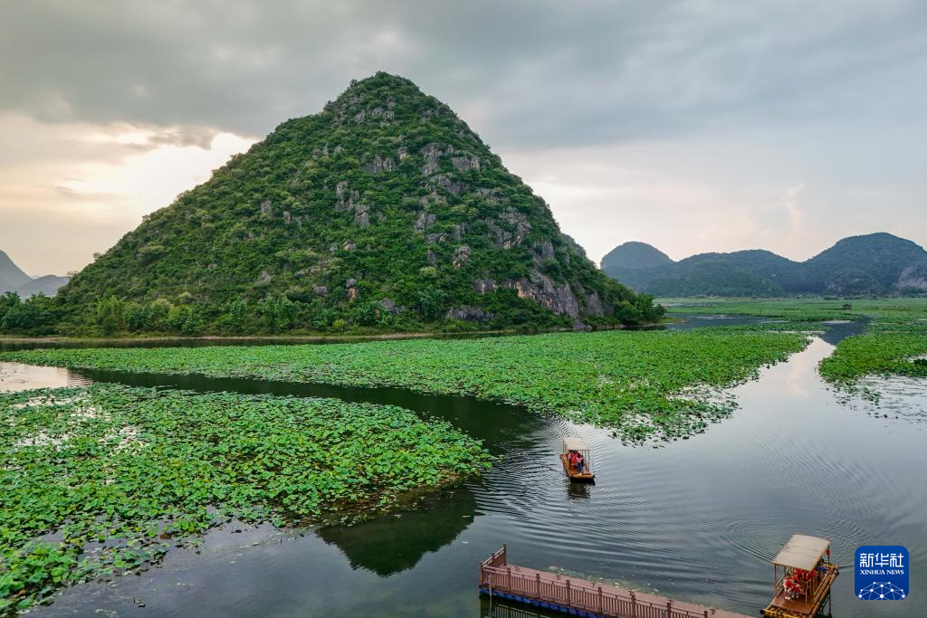 7月15日拍摄的普者黑景区风光(无人机照片)。新华社发(彭奕凯摄)
