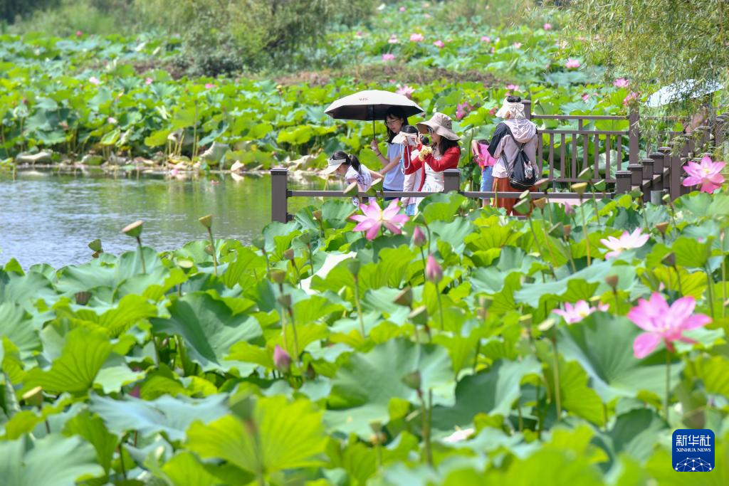 7月16日,游客在普者黑景区游玩拍照。新华社发(彭奕凯摄)