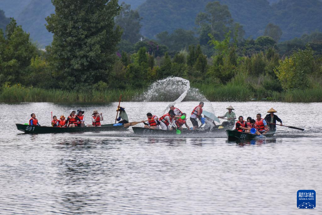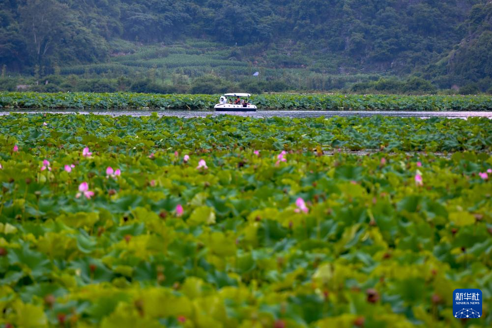 7月15日,游客在普者黑景区内乘船游览。新华社发(彭奕凯摄)