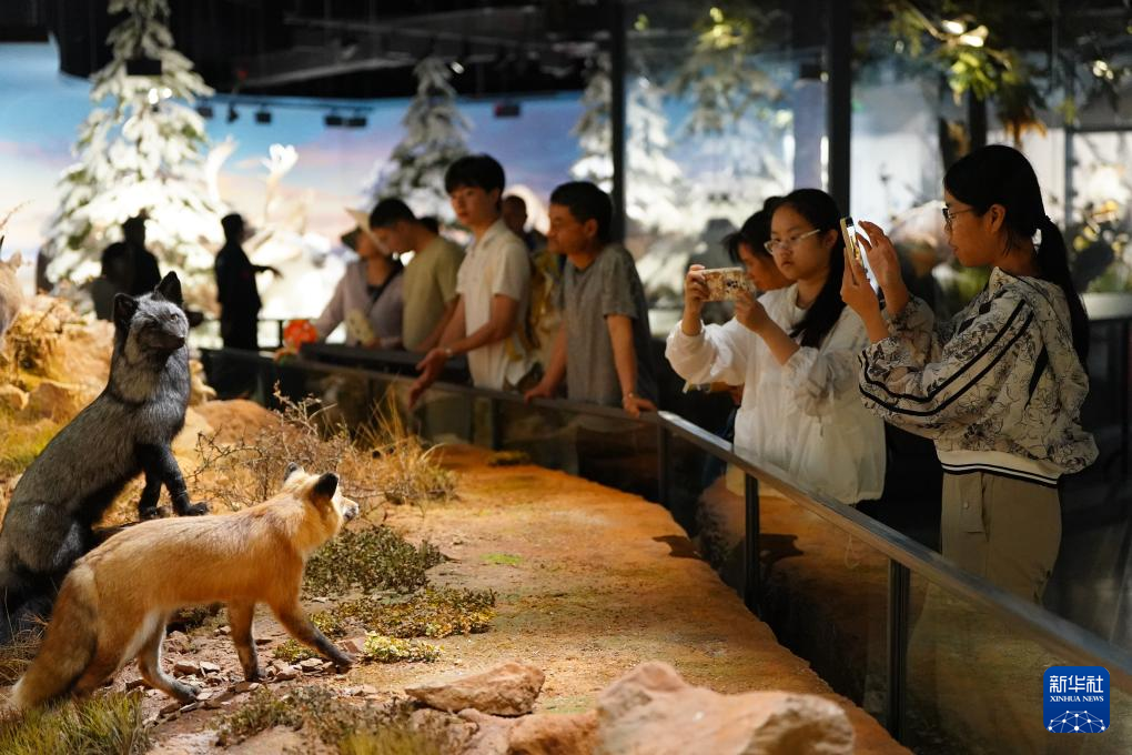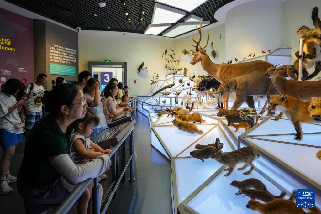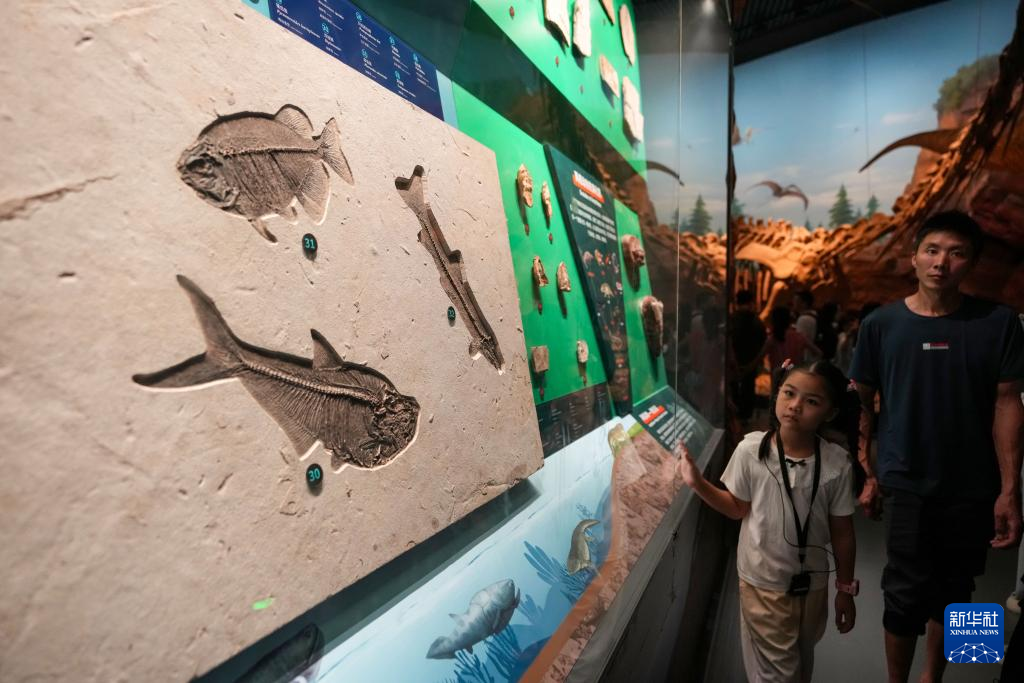 7月15日,游客在澄江化石地世界自然遗产博物馆参观动物标本。新华社记者 陈欣波 摄
