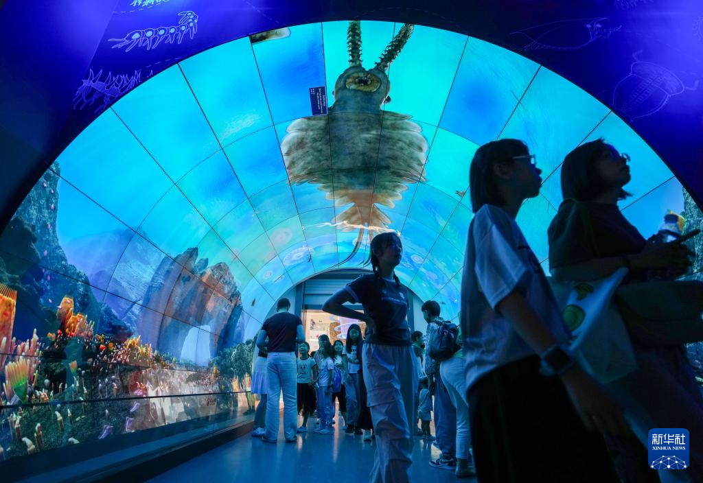 7月15日,游客在澄江化石地世界自然遗产博物馆“寒武纪海底隧道”参观。新华社记者 陈欣波 摄