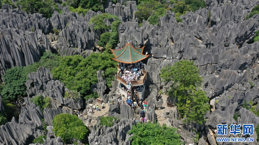 航拍石林风景区(7月18日摄)。新华网 赵普凡 摄