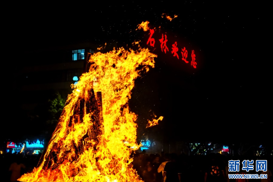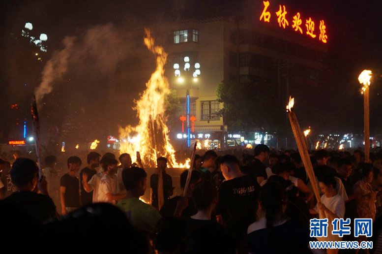 石林火把节现场(7月18日摄)。新华网 赵普凡 摄