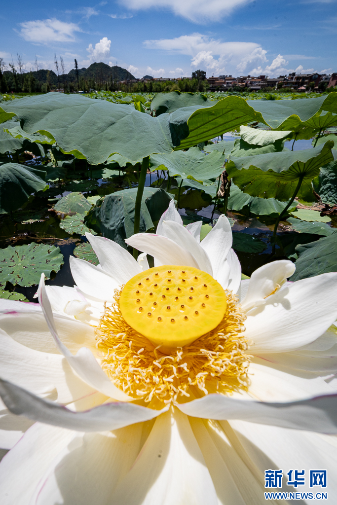 暑假期间,云南康旅集团运营的普者黑景区内,荷花竞相绽放,游客乘舟穿行其间,形成了一幅绝美的画卷。