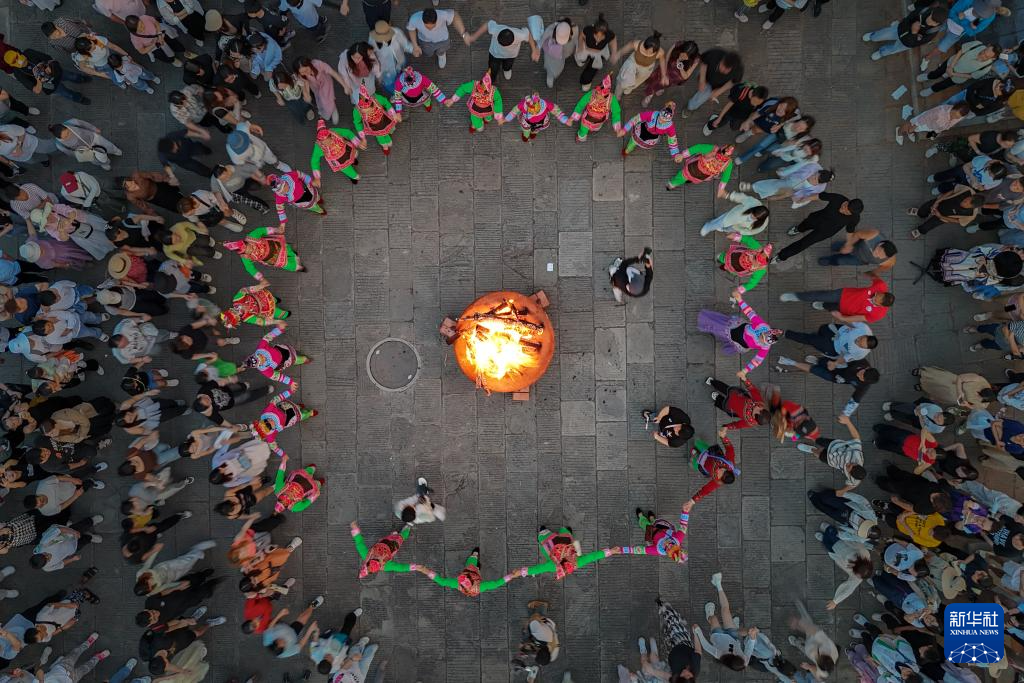 新华社昆明7月23日电 特写:围火踏歌,生生不息