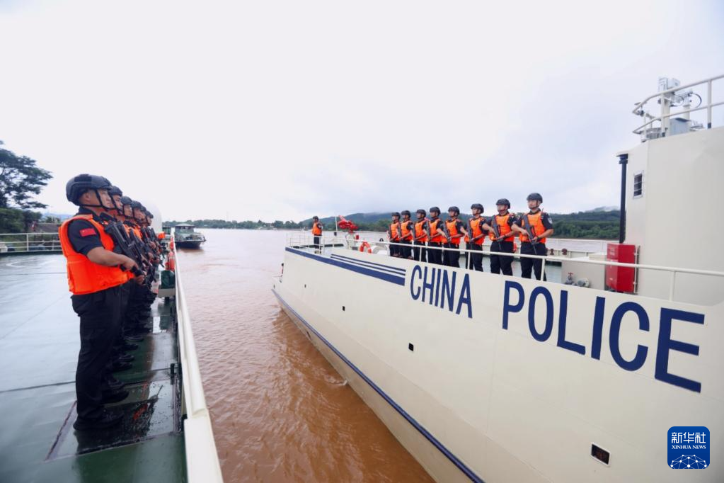 7月23日,联合巡逻执法编队抵达老挝孟莫水域。(云南省公安厅水上巡逻总队供图)