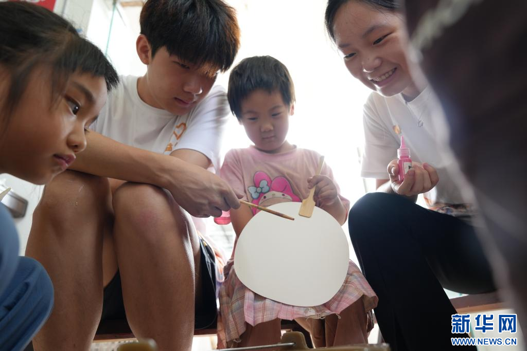 为传播中华优秀传统文化,团队精心设计了植物拓印、漆扇、京剧等非遗技艺课程。孩子们用小锤敲出自然之美,在扇面上写下给未来的寄语,在纸卷中塑造色彩与梦想。这些课程不仅拓宽了他们的视野,也让中华传统文化真正“融”进他们的生活与内心。