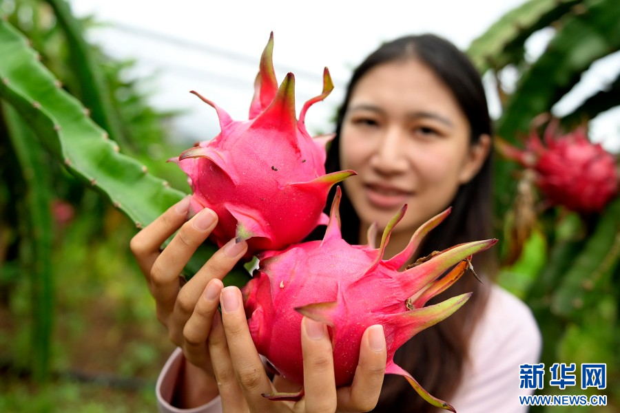 7月26日,游客在云南省大理白族自治州南涧彝族自治县南涧镇西山村火龙果种植基地采摘火龙果。新华网发(适志宏 摄)