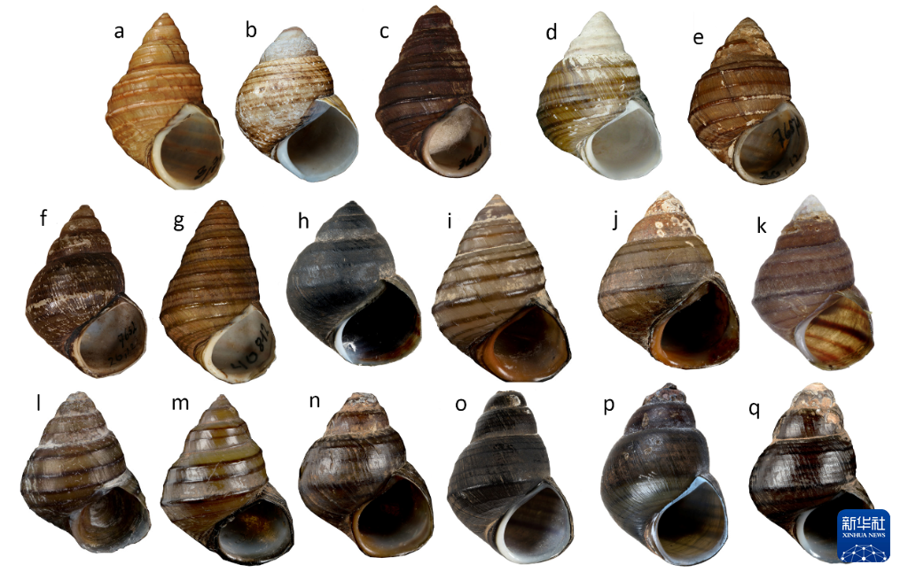 越田螺属的17个物种,其中h到q为10个新种。(中国科学院昆明动物研究所供图)