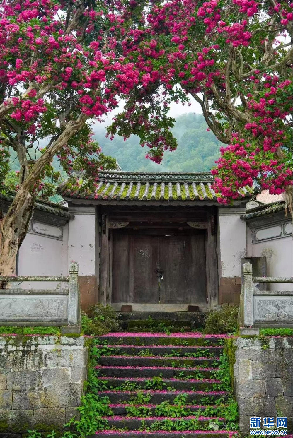 8月8日,云南省腾冲市玉壁村,紫薇花开。新华网发(赵辉 摄)