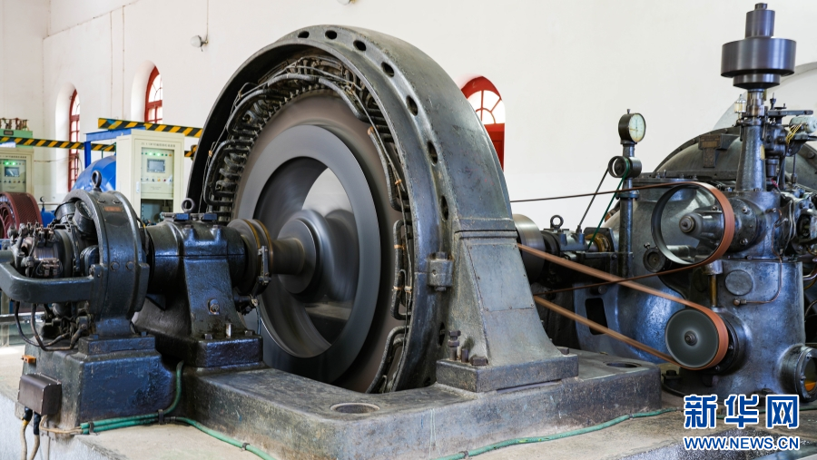 石龙坝水电站建成时的第一台水轮发电机组历经百年沧桑至今仍能运转发电(资料图)。新华网发(刘云 摄)