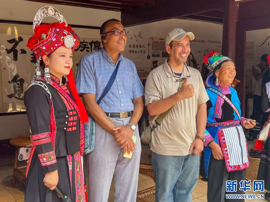 9月7日至8日,2025全球南方媒体智库高端论坛部分嘉宾前往云南省红河哈尼族彝族自治州弥勒市参访。从太平湖国际生态旅游度假区的篝火,到可邑小镇非遗传习点的院坝,来自全球南方多个国家的宾朋与弥勒市的各族居民一起,随着云南民族音乐起舞,共同跃动在欢快的节奏中,手挽手传递着国际情谊。