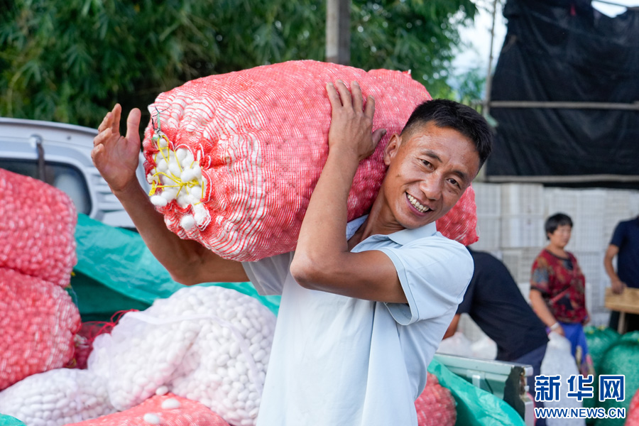 勐约乡蚕茧收购现场 (9月5日摄)。新华网发(段宗智 摄)