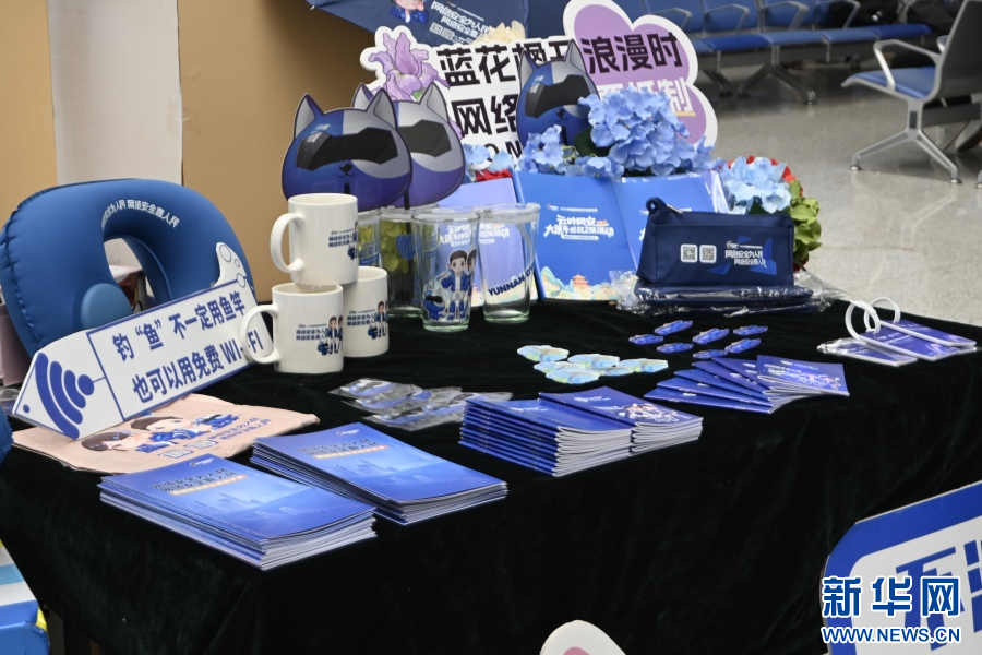 昆明南站候车厅内中老铁路“云岭网安”主题宣传活动现场(9月16日摄)。新华网发(刘云 摄)