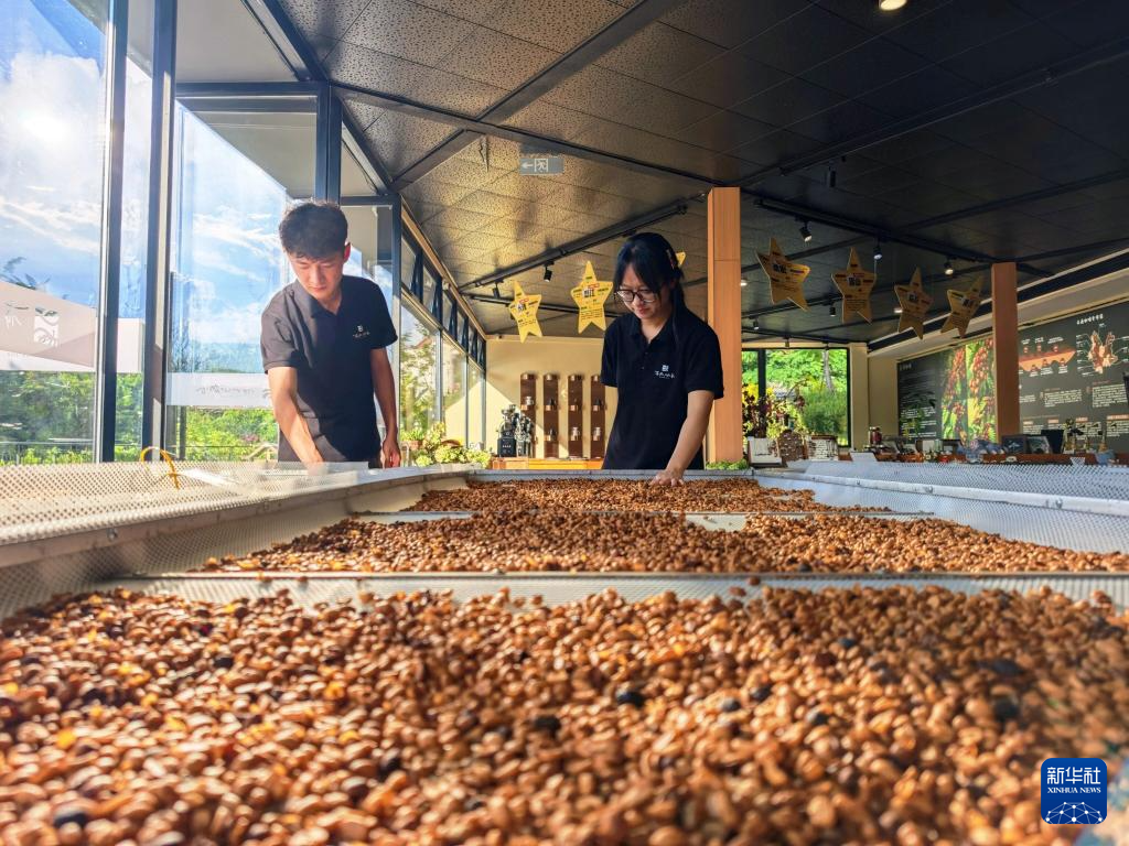 9月20日,普洱市思茅区南屏镇南岛河村白沙坡小组的“美丽星村·有风咖谷”工作人员在烘焙咖啡豆。新华社记者 邢广利 摄