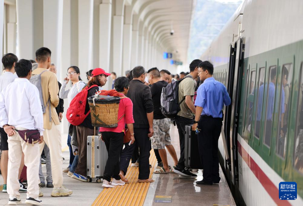 9月20日,旅客在中老铁路普洱站乘车。新华社记者 邢广利 摄