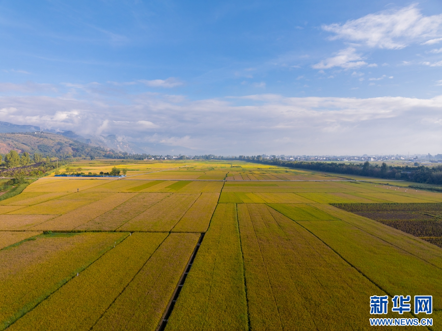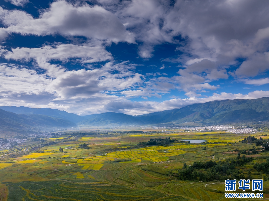 在洱源县右所镇拍摄的稻田(摄于9月20日)。新华网发(罗新才 摄)
