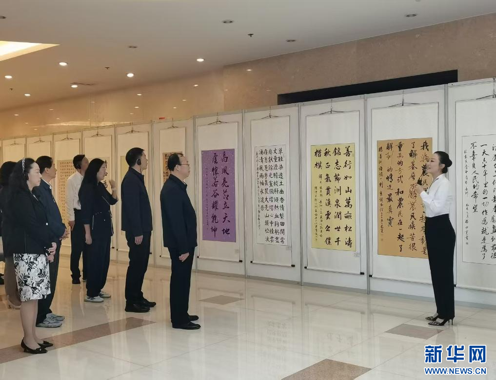 与会嘉宾参观“不忘初心、奉献一生的楷模——杨善洲”主题文艺作品展。新华社记者 李溪岩 摄