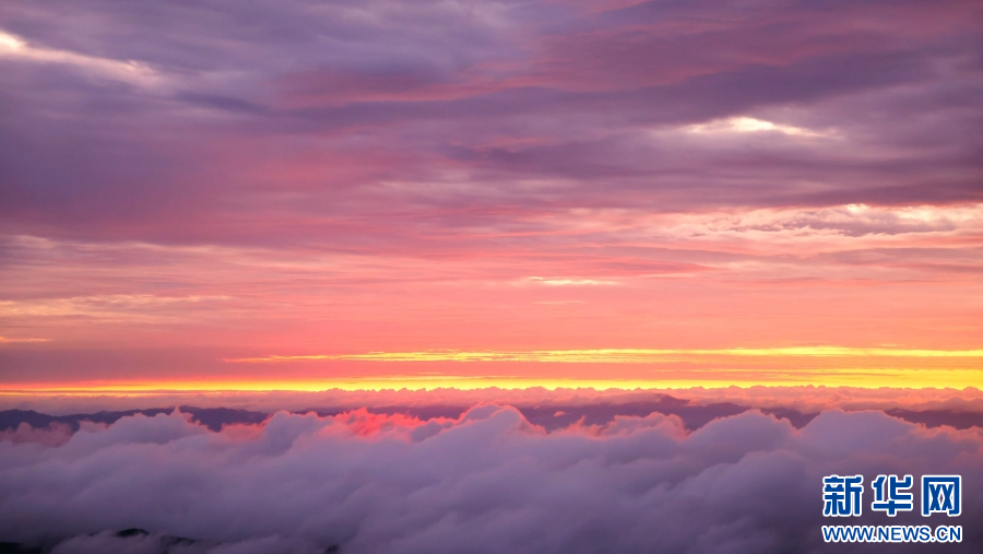金秋九月,云南省昭通市大关县靖安镇山巅,五彩朝霞将天际染得绚烂夺目。光影交织间,气势磅礴,绘就出一幅绝美壮丽的山河画卷。(唐应平 何桂花)