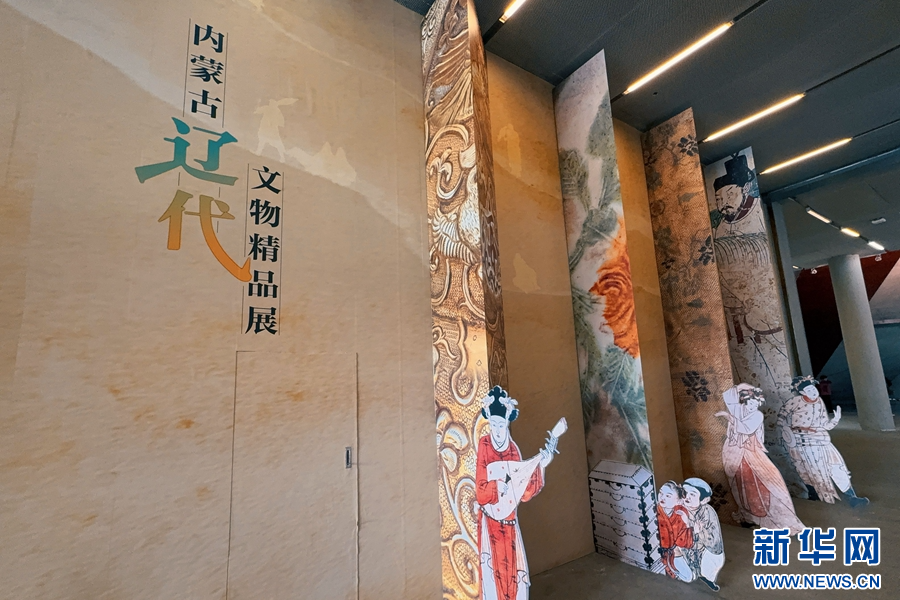 “契丹印迹——内蒙古辽代文物精品展”入口处的陈设(摄于9月30日)。新华网发(刘东 摄)