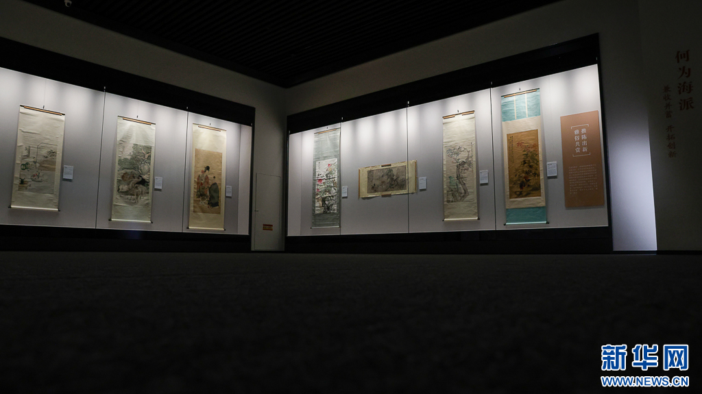 “上海·海上——上海市历史博物馆藏海派绘画名家作品展”展厅局部(摄于9月30日)。新华网发(刘东 摄)