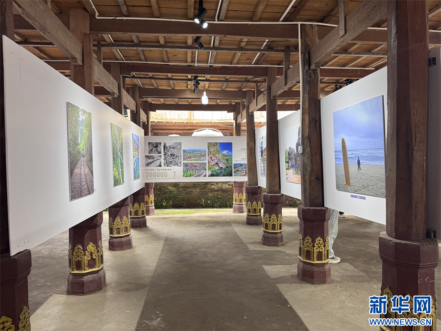 各类影像作品在傣族园的傣楼中展示(10月2日摄)。新华网发(柴静 摄)