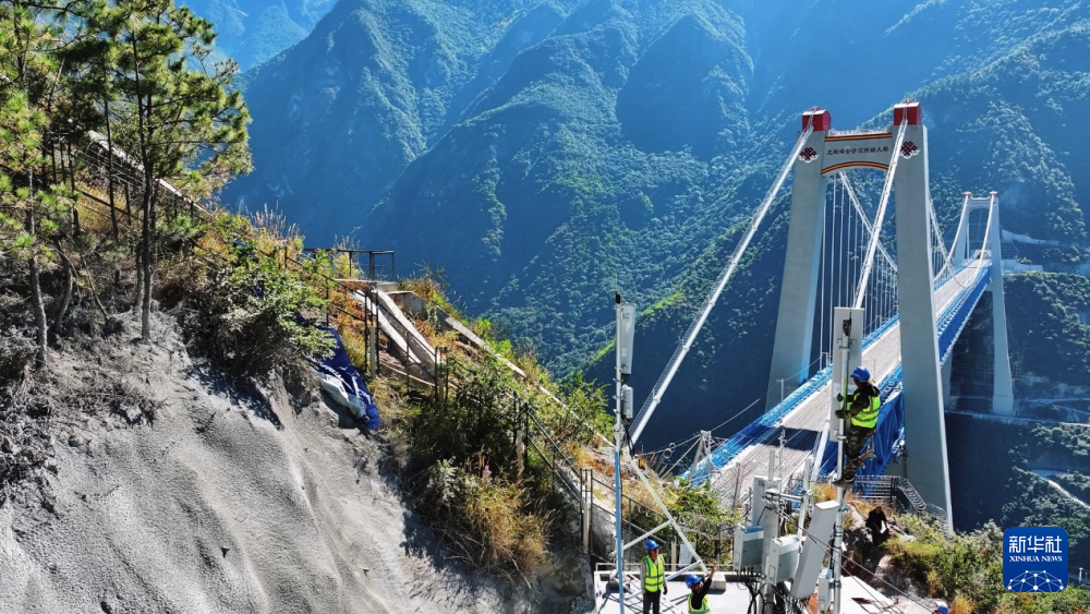 中国移动云南公司在丽香铁路虎跳峡金沙江铁路大桥开展网络建设。新华社发