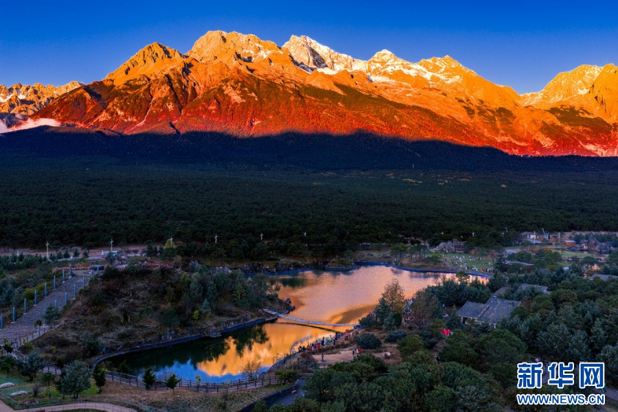 玉龙雪山“日照金山”美景(11月15日摄)。新华网发(徐俊 摄)