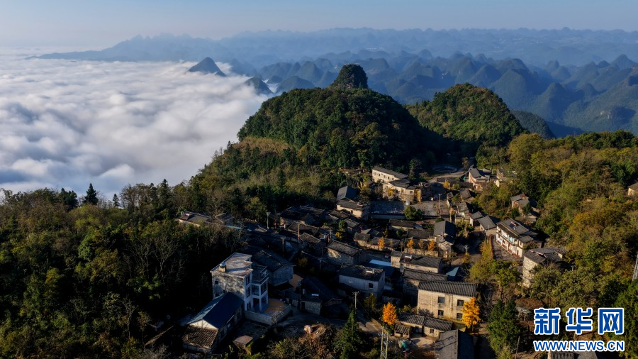 航拍旧屋基乡喀斯特峰林景观(11月26日摄)。