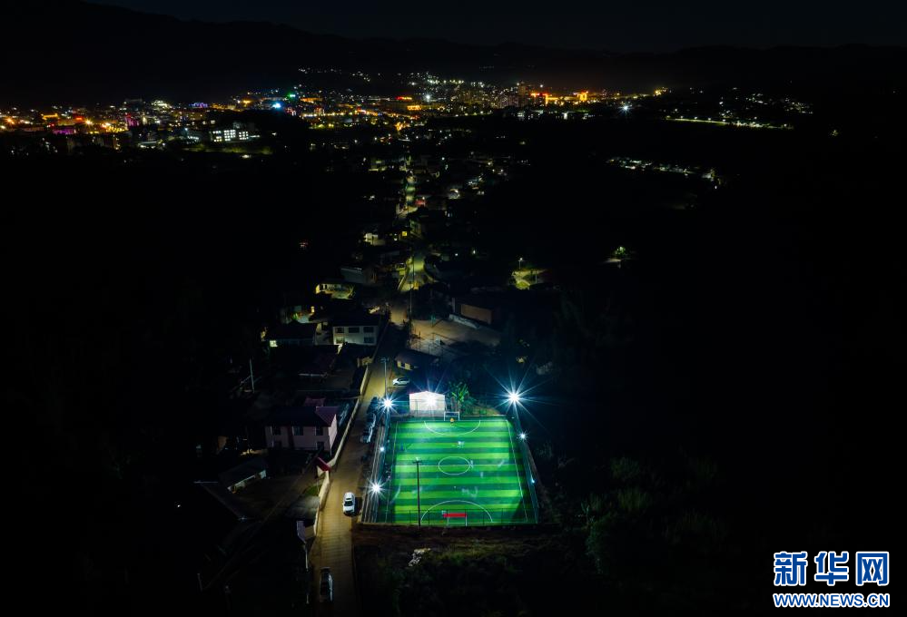 这是无人机拍摄的夜色中的云南省沧源佤族自治县龙乃村足球场(2022年12月7日摄)。新华社记者江文耀 摄