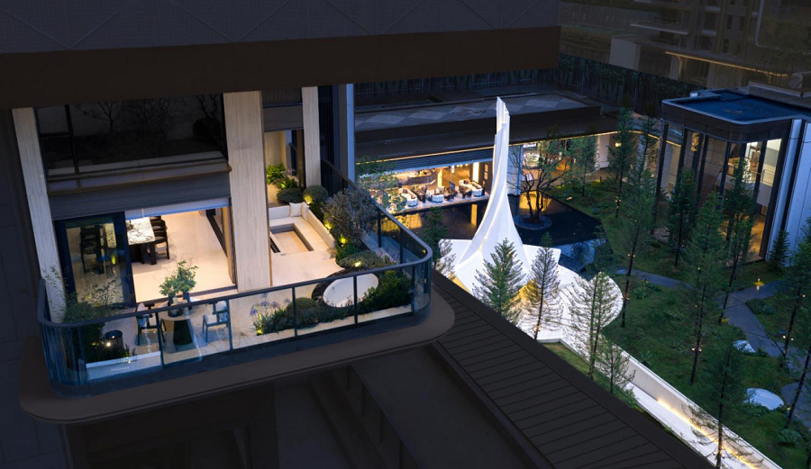 在产品设计上,项目打造的259平方米的户型,通过创新设计,实际使用面积可达约333平方米。这个户型拥有270度环幕巨厅、约53平方米的空中花园和42平方米的主卧套房,旨在将住宅的空间层次感与大平层的开阔感融为一体,以满足部分业主的居住需求。