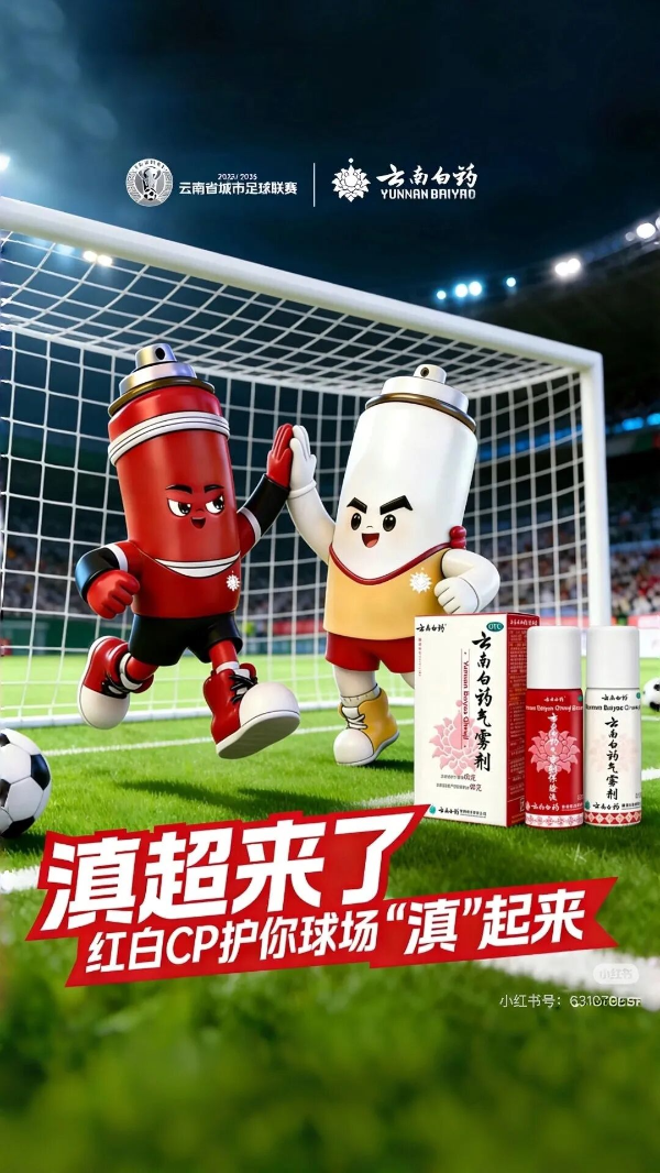 此外,云南白药还为球员提供扭伤喷气雾剂、赛后贴药膏等专业保障;为观众提供久坐腰酸贴白药膏、呐喊肌肉酸试喷气雾剂、试饮气血康补元气等。从球员到观众,云南白药以全场景的产品与服务,为滇超联赛构筑起一道安心的健康后盾。