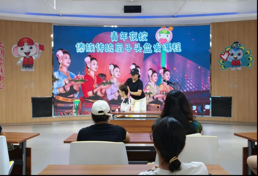 景洪青年夜校开办傣族传统扇子头盘发课程(资料图)。