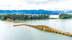 在滇池东风坝开合浮桥,木质栈道上游客络绎不绝,红嘴鸥在湖面盘旋嬉戏。“浮桥设计融合中式美学,与大观公园建筑风格呼应,夜间灯光亮起更是美不胜收。”昆明文旅集团品牌管理负责人周梦棋介绍,这座浮桥国庆中秋8天假期就接待游客19.64万人次,成为串联滇池岸线的“新纽带”。未来,集团将继续推进景商融合建设,在浮桥周边打造滇岸咖啡走廊,提供云南文创咖啡等产品,为市民和游客提供丰富多元的文旅体验。