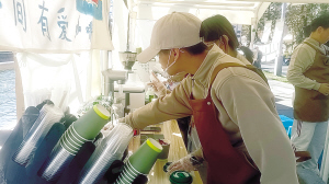从环西桥到拱桥,大观路热闹非凡。音乐演出、非遗展示、艺术展览等多元内容精彩纷呈,特色小吃、鲜榨果汁、香气四溢的咖啡等美食摊位前人头攒动,市民纷纷驻足品尝。其中,盲哑学校学生开的“晴天无声咖啡”店,更是吸引市民的目光。