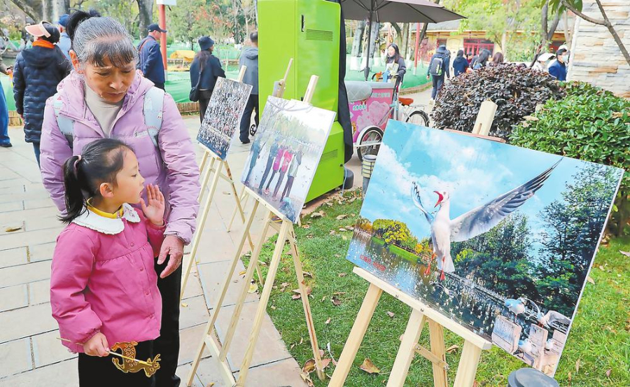 市民游客在翠湖公园观展。记者 杨峥 摄